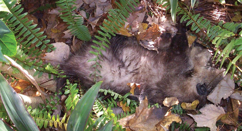 We are experts in dead animal removal, and take our job seriously. When removing dead animals, we do a COMPLETE job — not only do we remove the dead animal from your home or yard, we also decontaminate the area, deodorize it, and dispose of the animal or cremate it. If you aren't sure whether the stench in your house is due to a rotting carcass or another reason, we can sniff it out with our noses from our years of experience. We remove dead raccoons, dead opossums, dead skunks, dead squirrels, dead birds, even dead dogs and cats. We frequently remove dead rodents from inside walls, because poison kills rats and mice, who die in your house. We completely solve your dead animal problem by taking these steps: